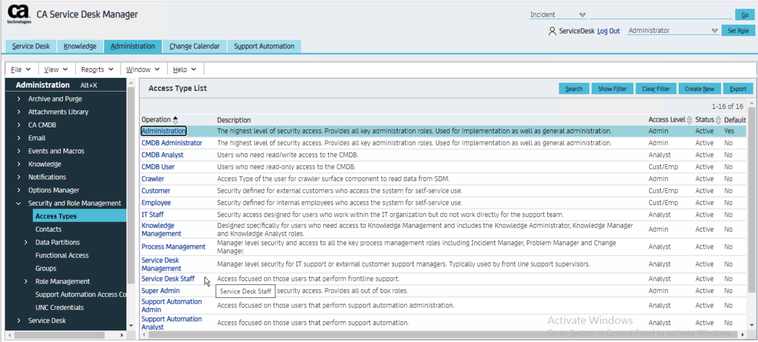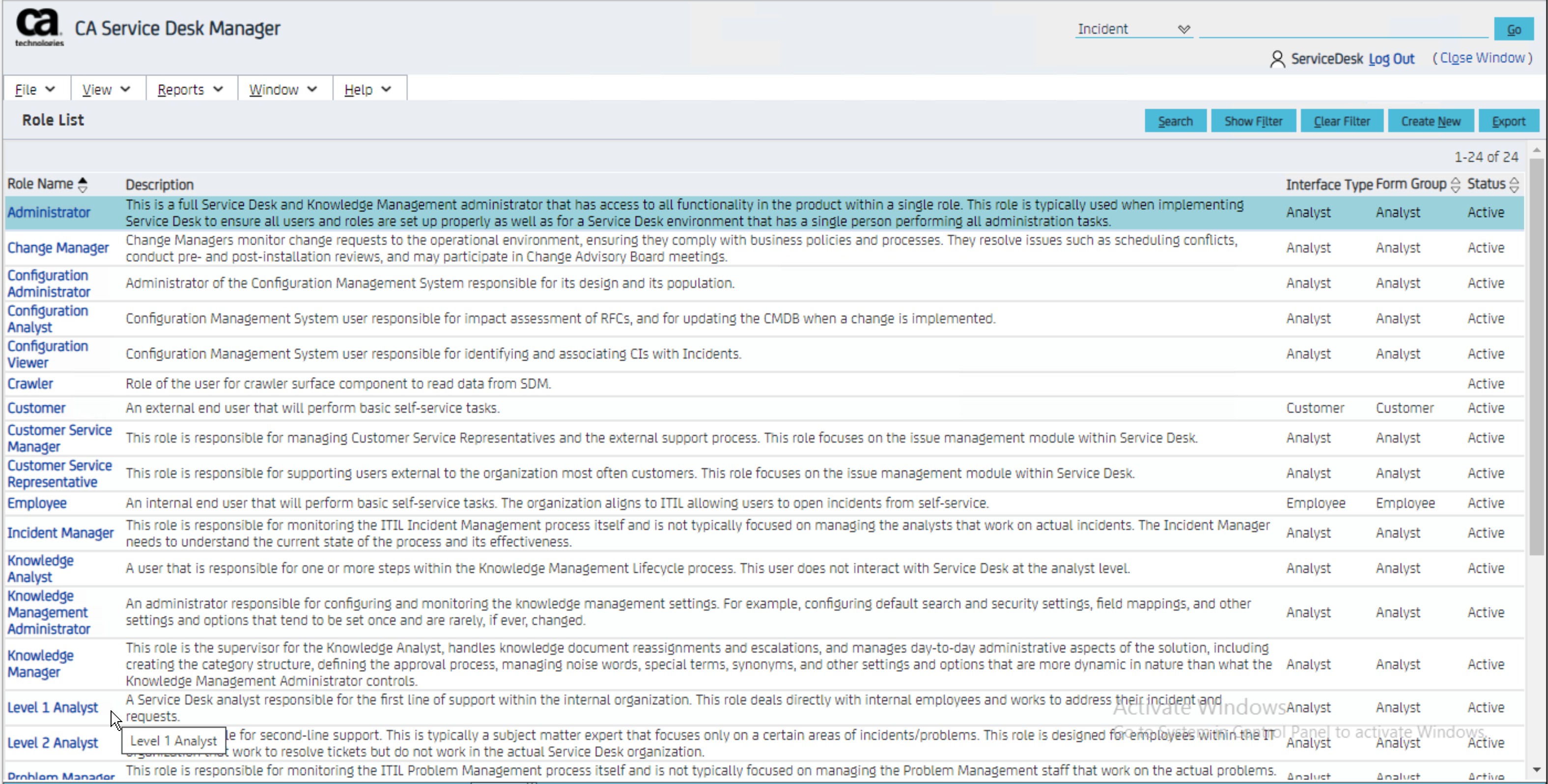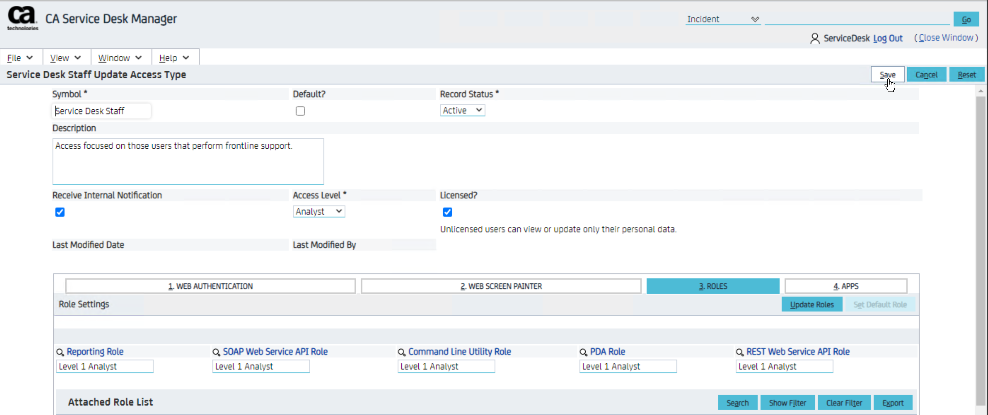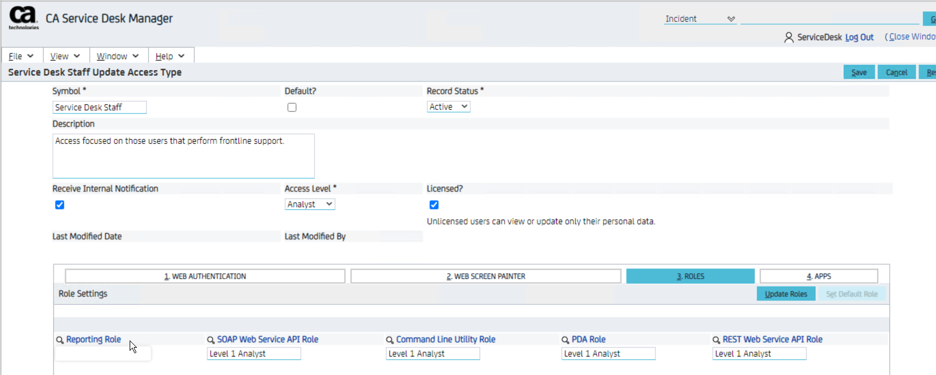 This Role is held against the Access Type and defines the Reporting security. Each Access Type has a Reporting Role.