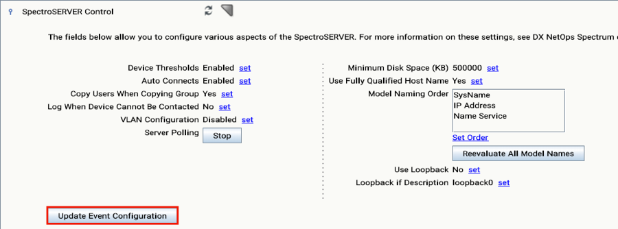 OneClick ~~> VNM ~~> SpectroSERVER Control ~~> Update Event Configuration