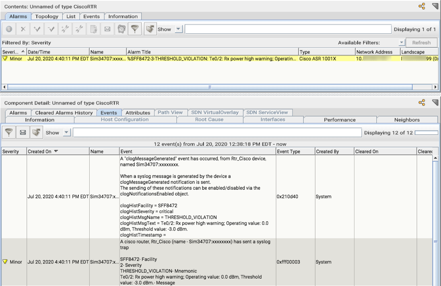 This KB article will serve as a supplement to the documentation and will map the following syslog trap to a new event and raise an alarm in Spectrum.