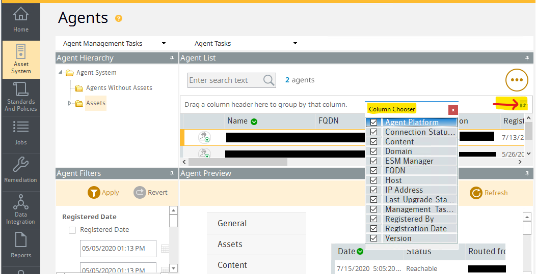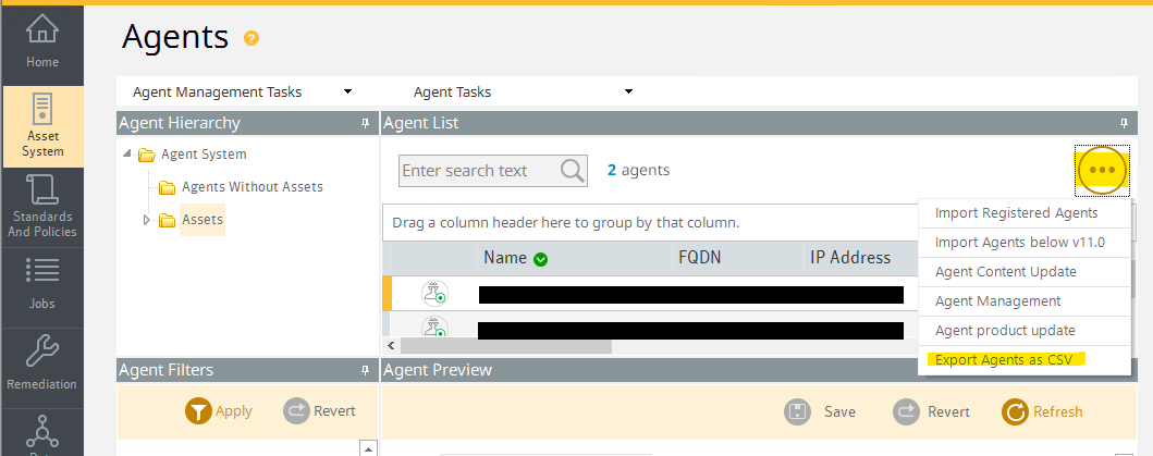NOTE: Once the connectivity problem to that agent has been resolved, check in the CCS console to see if the agent (Assets > Agents section) shows a green or red icon for that agent. If it still shows that the agent is red, you may have to run a 'Ping' from the CCS Console (Right-click on the agent name and select 'Ping') for CCS to check to see if it has connectivity to the agent. If the agent then shows green, it will be included in the next data collection or CER job that is run on that agent. If it is red, then there are problems connecting to that agent and it will not be included until the problem is resolved and a successful CCS Ping is run on that agent.