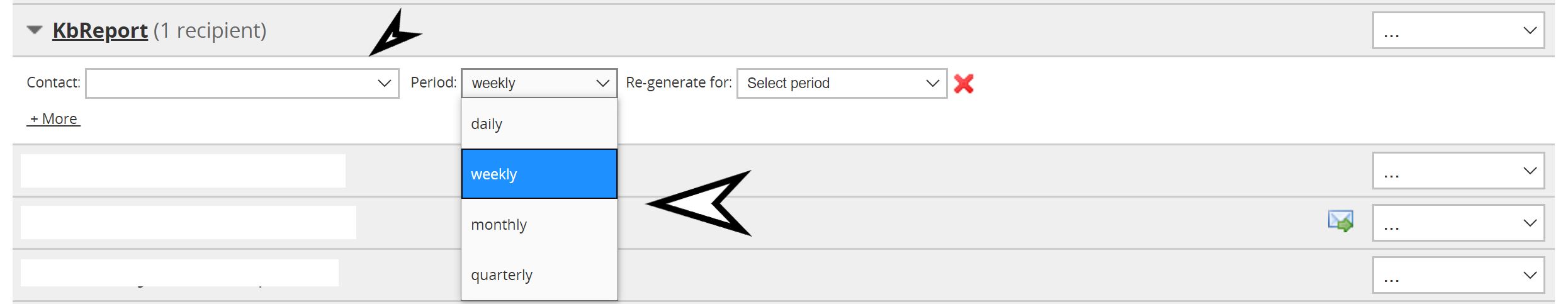 6) Now you will select a mail receipt that will receive the report and the period that you want to see.