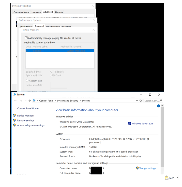 Limitations imposed upon Windows Virtual Memory in customer's environment by Windows administration.