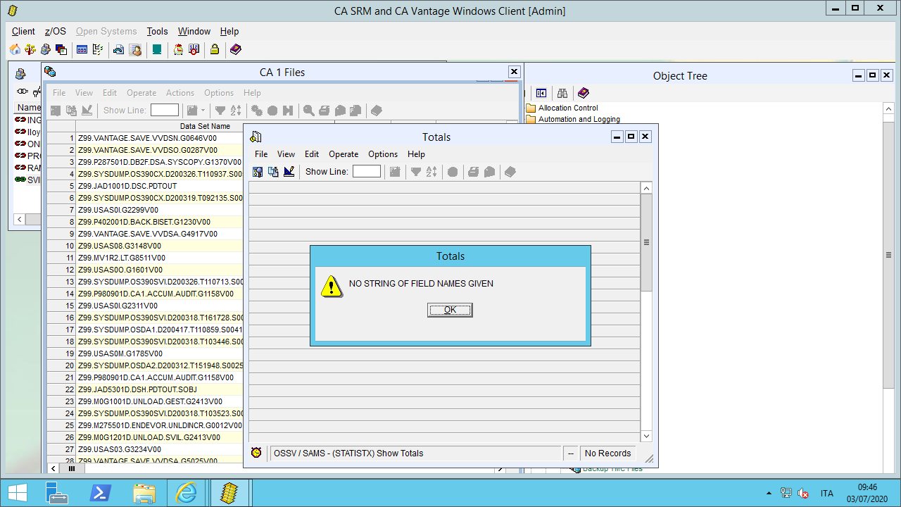 Sometimes it can happen that when using the Vantage Windows Client and asking for Statistics (both Full or Totals) on any of the available Views, the below popup is received: