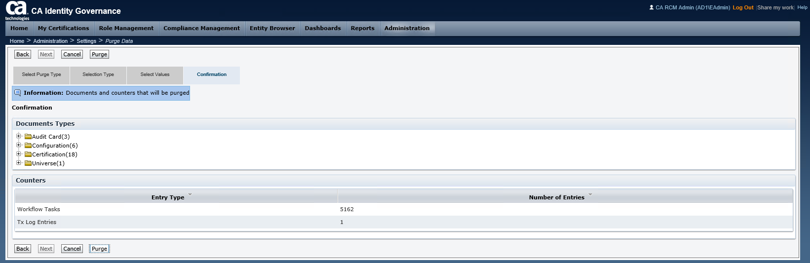 - At the confirmation page, select purge. This will purge the universe.