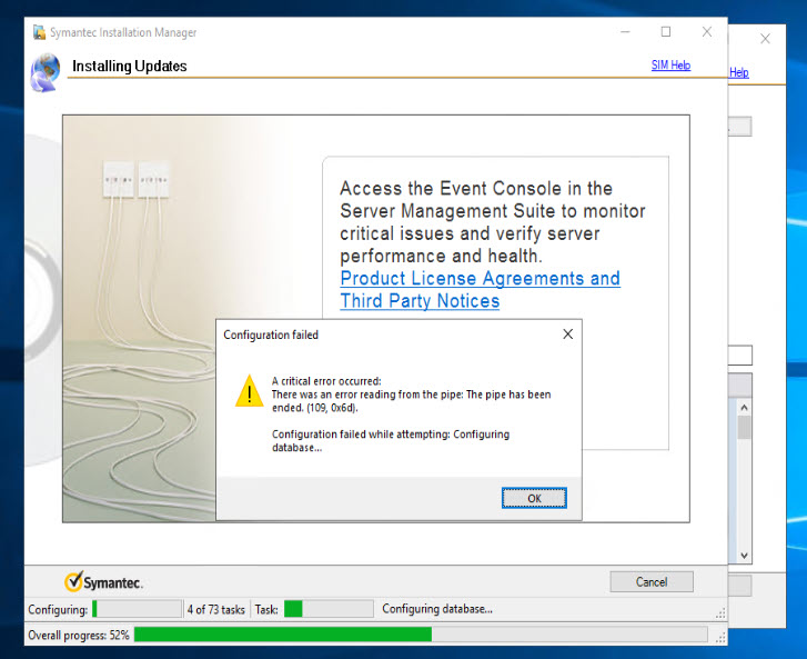 Symantec Installation Manager (SIM) is having a hard time configuring the database. It fails with error: