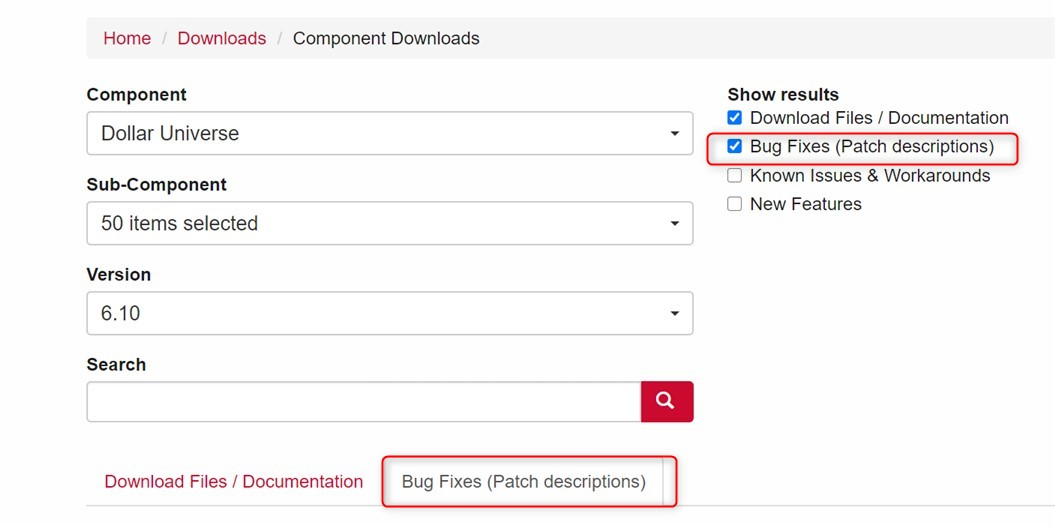 You need to select the version needed, ie 6.10 and all the Subcomponents and that will provide all bug fixes done since 6.10.01 until the current 6.10.xx version (6.10.41 by August 2020).