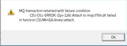 CSU-DLL-ERROR:(Sys-126) Attach to mqicf70n.dll failed in function CSUWin32Library::attach.