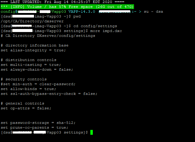 2. Navigate to and edit /opt/CA/Directory/dxserver/config/settings/impd.dxc