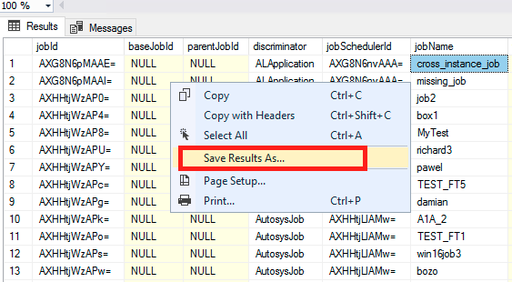 - After running the query, go to the Results area and right click and select "Save Results As..." and save as a .csv file