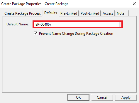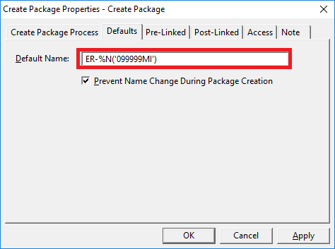 There’s a section there called “How to Specify Default Package and Form Names” that explains how to set up the pattern you want to use in the “Default Name” field. If you want your package names to look similar to what you have specified, your Default Name field would be “ER-%N('099999MI')”.