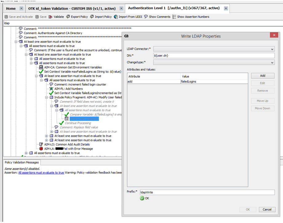 Custom LDAP assertion need to be updated manually from Policy Manager.