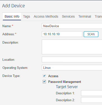 If the account cannot be created with the Password Management checkbox marked, then it means that the IP is in use by another device. When a target server is created for a device in the Password Management part of the database, PAM will store both the hostname and IP address for the server regardless of how the whether the hostname or IP was given in the UI.