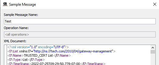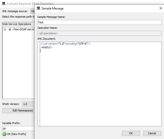 3. Add a Name to the sample Message and Paste the copied XML text from Browser into the XML Document Section, just over-writing the second line <empty/>