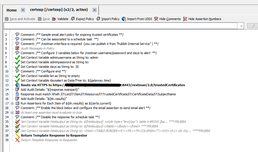 2. The Example shows on this KB is based on the Policy Sample used in "Monitor expiring trusted certificate with schedule task on API Gateway"