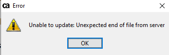was failing with the following error: Unable to update: Unexpected end of file from server