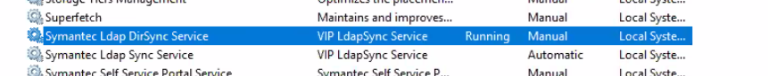 The Symantec Ldap Service or Symantec LDAP Sync Simulation Service is used by the VIP Enterprise Gateway during an LDAP synchronization simulation. The Windows Service Console shows the Startup Type as 'manual' when a simulation is not in progress, and 'automatic' when a simulation is running. (When performing a manual simulation, press 'stop simulation' after the job is complete).