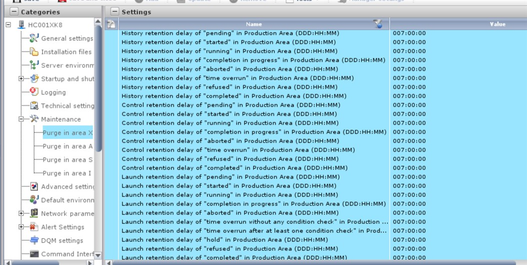 Be advised that increasing the default retention will make the data files to grow in size which will slow-down the performances of the Dollar Universe Node during regular operations as Launches / Maintenance and so on.