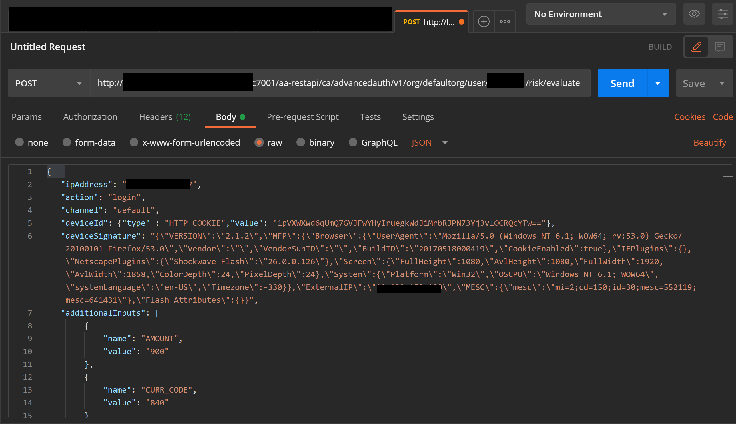 "deviceSignature": "{\"VERSION\":\"2.1.2\",\"MFP\":{\"Browser\":{\"UserAgent\":\"Mozilla/5.0 (Windows NT 6.1; WOW64; rv:53.0) Gecko/20100101 Firefox/53.0\",\"Vendor\":\"\",\"VendorSubID\":\"\",\"BuildID\":\"20170518000419\",\"CookieEnabled\":true},\"IEPlugins\":{},\"NetscapePlugins\":{\"Shockwave Flash\":\"26.0.0.126\"},\"Screen\":{\"FullHeight\":1080,\"AvlHeight\":1080,\"FullWidth\":1920,\"AvlWidth\":1858,\"ColorDepth\":24,\"PixelDepth\":24},\"System\":{\"Platform\":\"Win32\",\"OSCPU\":\"Windows NT 6.1; WOW64\",\"systemLanguage\":\"en-US\",\"Timezone\":-330}},\"ExternalIP\":\"10.x.x.x\",\"MESC\":{\"mesc\":\"mi=2;cd=150;id=30;mesc=552119;mesc=641431\"},\"Flash Attributes\":{}}"