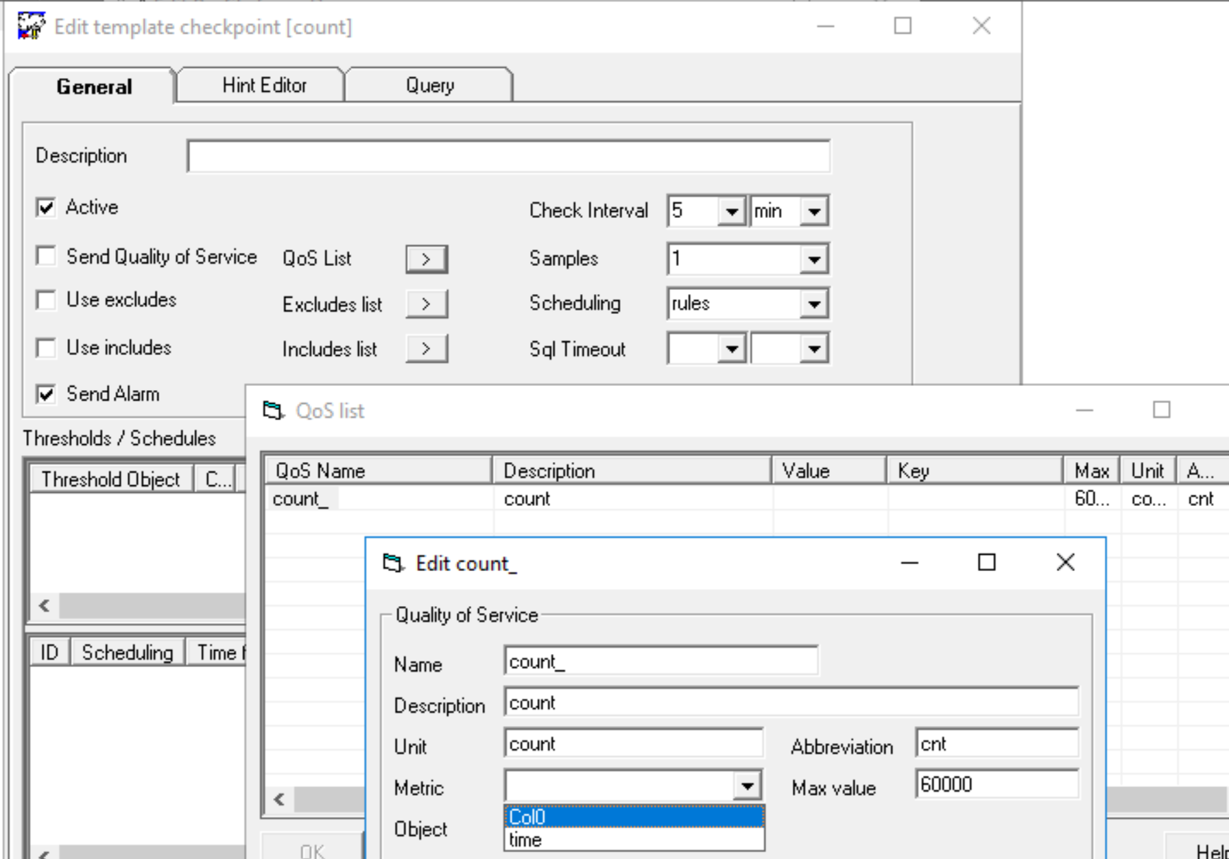When creating a custom Oracle query it's impossible to create or select metrics in the QOS List drop down.