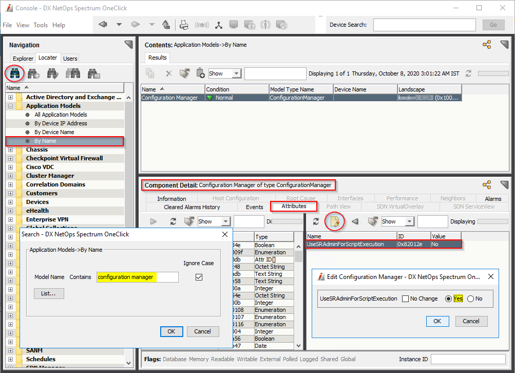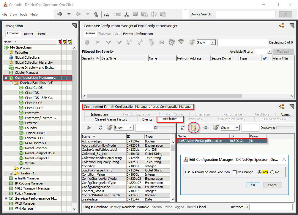 1. Select the Configuration Manager in the Explorer tab. Select the Attributes tab.