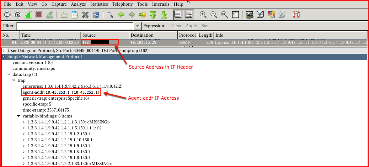 inside of the agent-addr field of a v1 Trap. After upgrading to Spectrum 10.4.x this is no longer the case, the SpectroSERVER is only looking