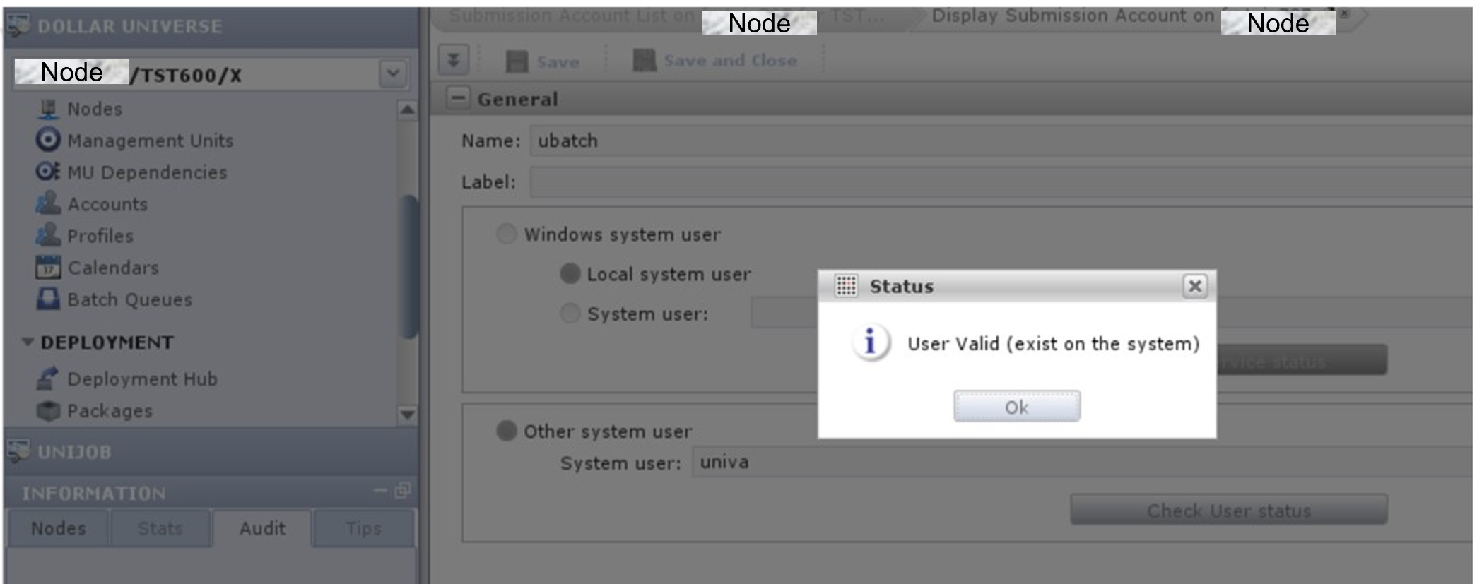 The System User is ok as UVC states "User Valid" when clicking into Account - Check User Status: