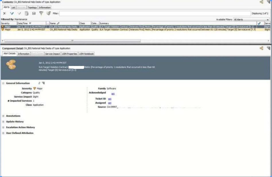 "D:\Program Files (x86)\CA\"SOI\GCEventAddCmd.bat -h####.####.####.####:7090 -a20121514412382-i"SA_Application:Help Desk" -cApplication -dCA_BSI -s2 -tQuality -m"SLA TargetViolation Contract [Company A] Metric [Percentage of priority 2 resolutions that occurredbetween 61-120 minutes] Target [0] ServiceLevel [7.7]"