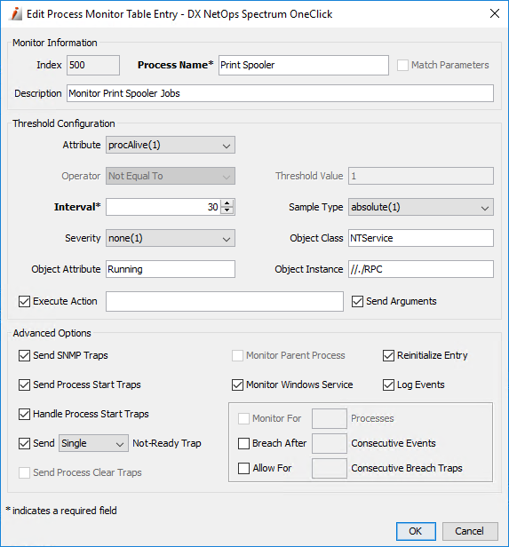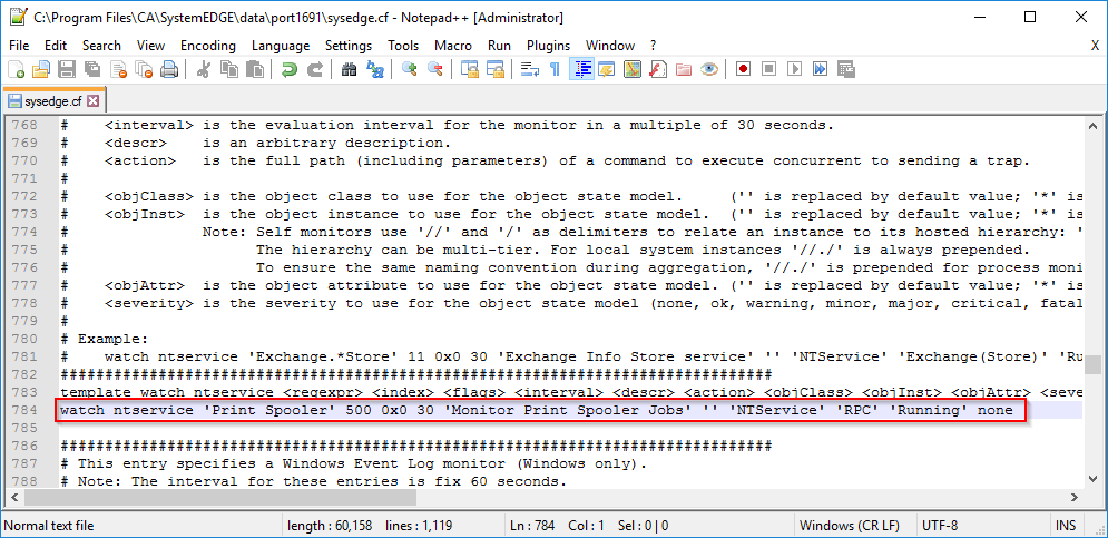 watch ntservice 'Print Spooler' 500 0x0 30 'Monitor Print Spooler Jobs' '' 'NTService' 'RPC' 'Running' none