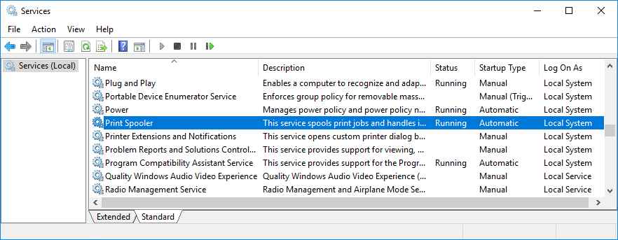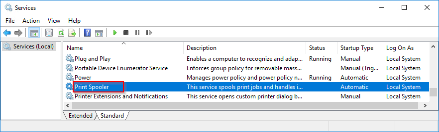 Ensure you copied the exact service's name, in this example is: Print Spooler
