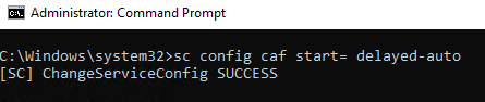 sc config caf start= delayed-auto
