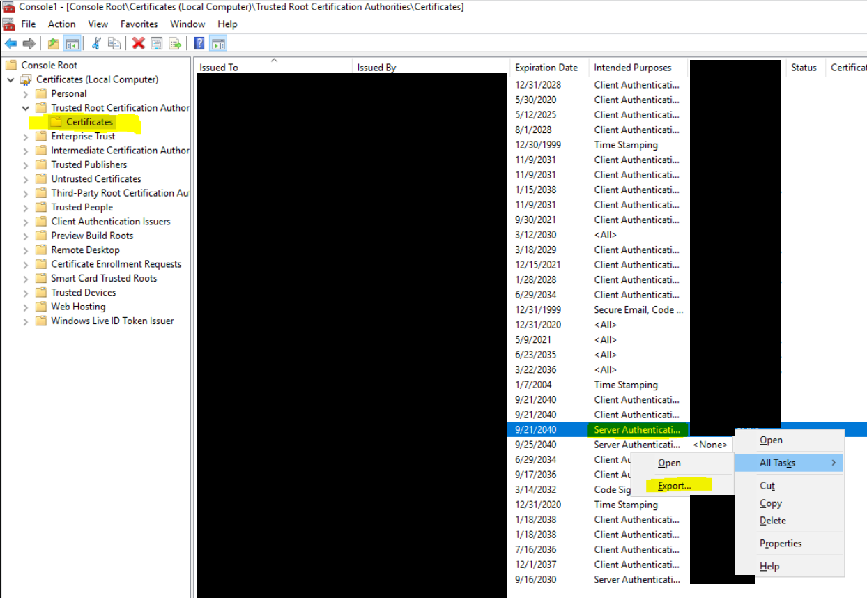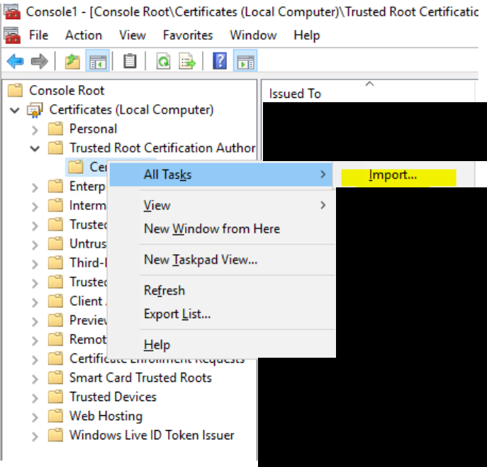 NOTE: Follow the same process to copy the Child NS Certificate to the Parent NS.