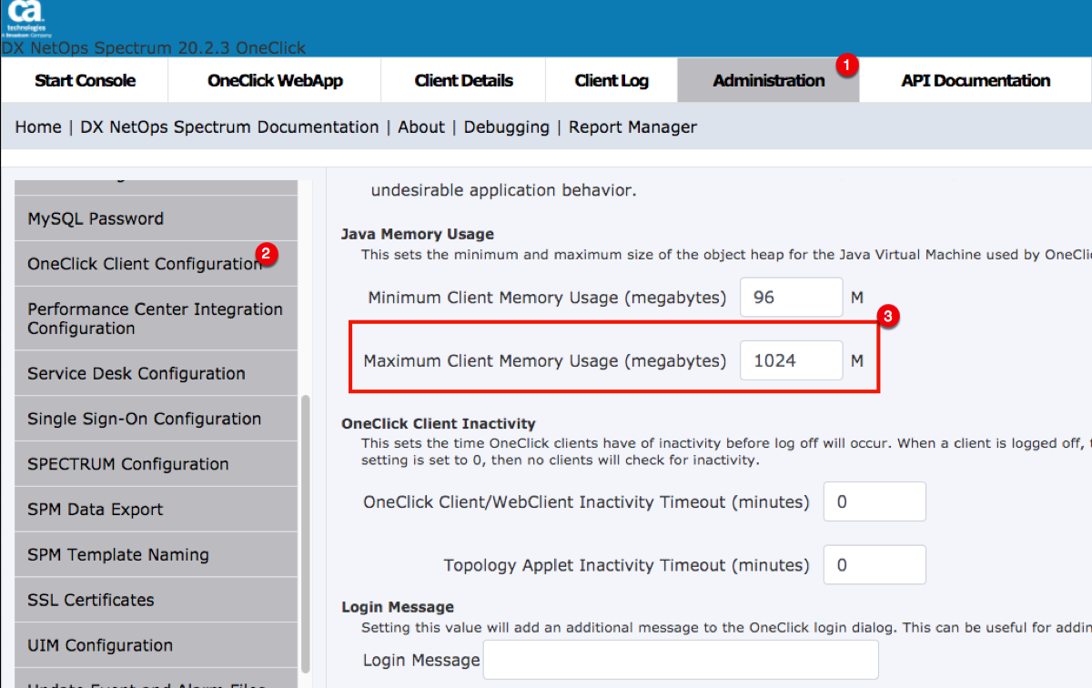 Increase the maximum memory allocation for the OneClick client.