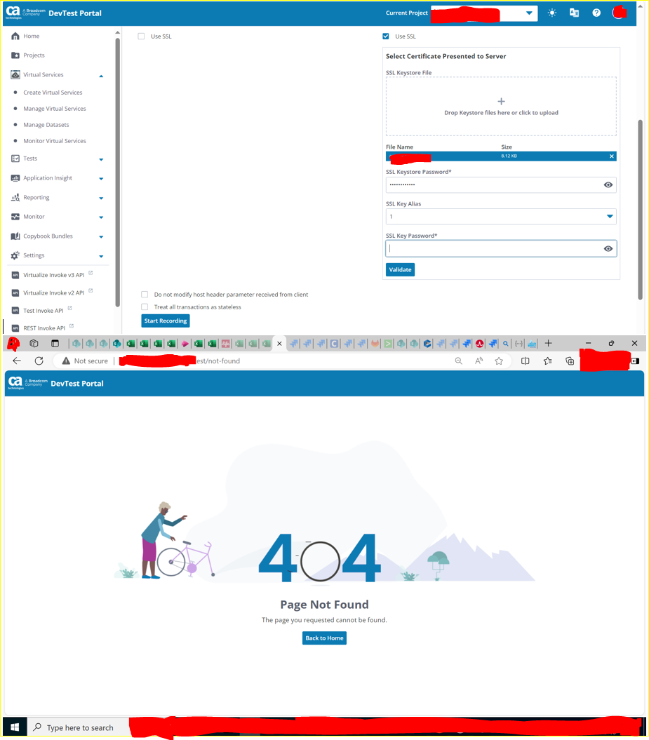 Customers would like to leverage a DigiCert SSL certificate during the creation of a recording/VS through portal and get the errors "Your recording session has become invalid because of the following error: Recording session not found: 7330A623188F11EBBA1A005056819135. Your recording session will be reset." or "404 Page Not Found" as in the below screenshots.
