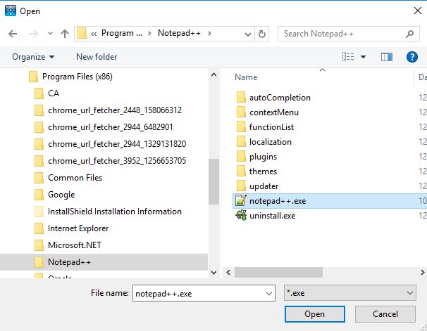 Navigate to the executable you want to use to open the specified file type. Select the file and click "Open"