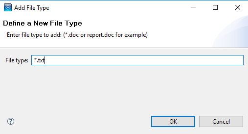 Next to the upper "File types" list, click the "Add" button to add the needed file extensions to the list.