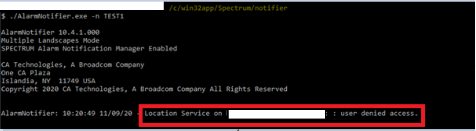 Spectrum AlarmNotifier not starting with error "user denied access"