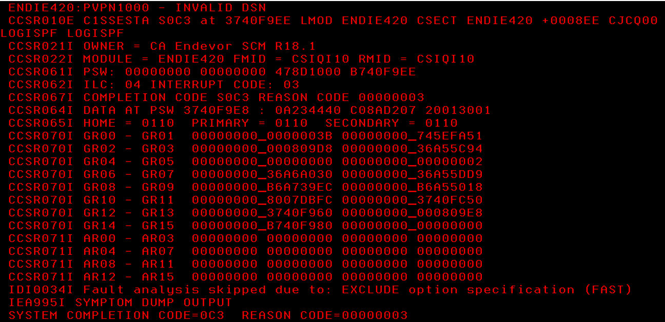 When try to edit or create element in Endevor Quick Edit after press Enter see message "Recovery suspended" and after press F3 see this message:ENDIE420:PVPN1000 - INVALID DSN