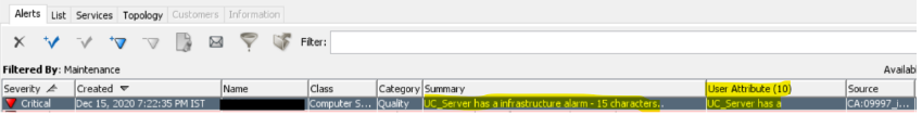 4. Publish an alert through Universal Connector and verify UserAttribute10 column for this alert