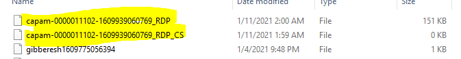 While session recording is active, CA PAM creates the files as below for a Windows access from PAM, to be found in the NFS share location where session recording files are written,