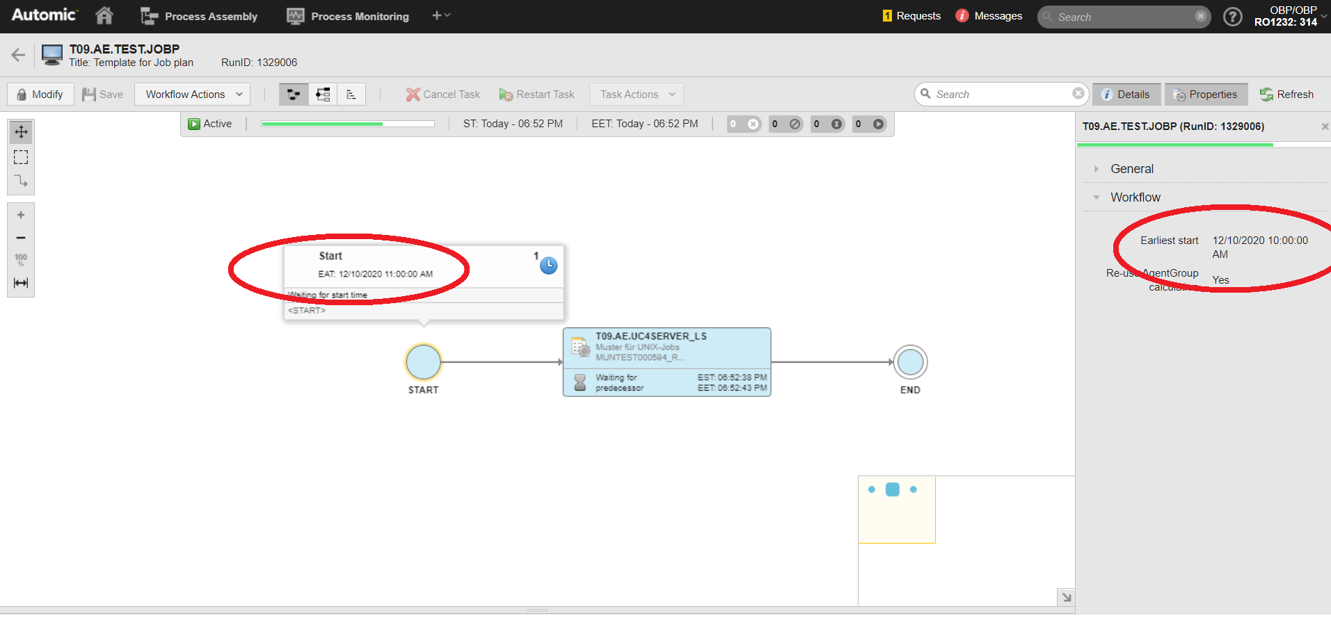 When the workflow gets started in the monitoring, there is a difference of 1 hour between the display of EAT and EET (Estimated End time) or EST (Estimated start time) in the 'DETAILS' panel (of the startpoint) and between the popup when the mouse goes over the start point of the workflow.