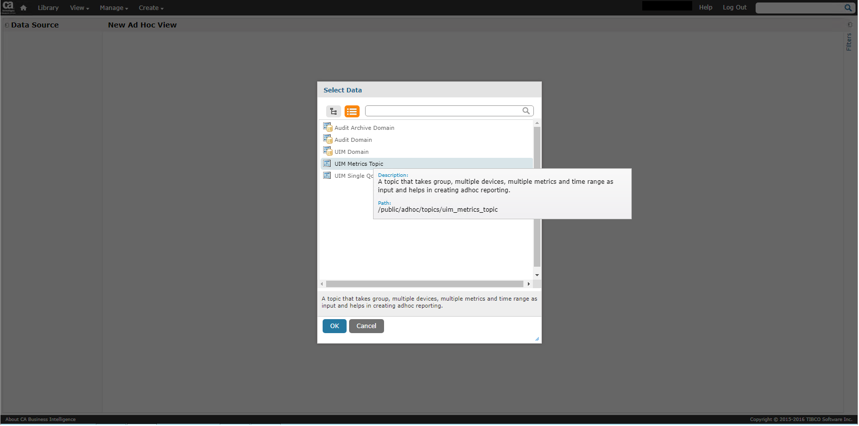 Select “UIM Metrics Topic”