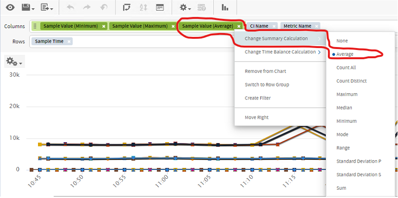 You may also have the desire to get min, max, average, and standard deviation values in your report. This can be accomplished by dragging multiple sample values to row or column, and then right click on the sample value and set the calculation method.