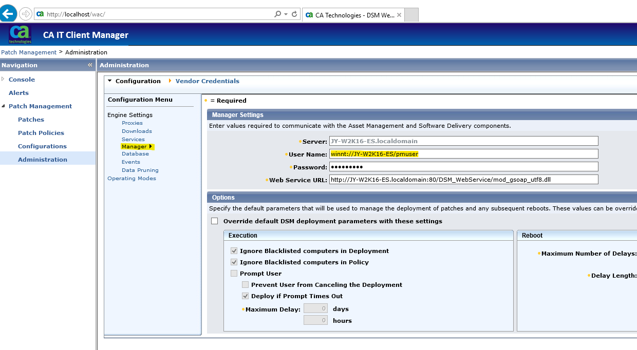 6- Open DSM Web Console, go in Patch Management - Administration - Manager