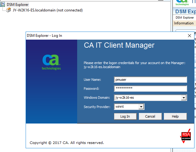 4- In DSM GUI, connect with new created user to initiliaze it in ITCM database and check that all is ok.