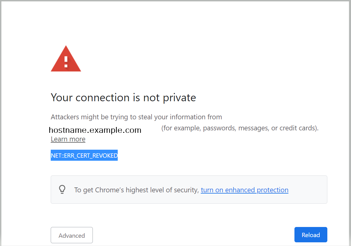While attempting to connect to the DevTest Portal URL, our users are seeing a NET::ERR_CERT_REVOKED error getting thrown by the Chrome browser. Only users which, are using the Chrome browser are seeing the error. Users, which use the Firefox browser, are not having this issue. Please help us understand why this error is seen in Chrome, and what to do to correct the issue.