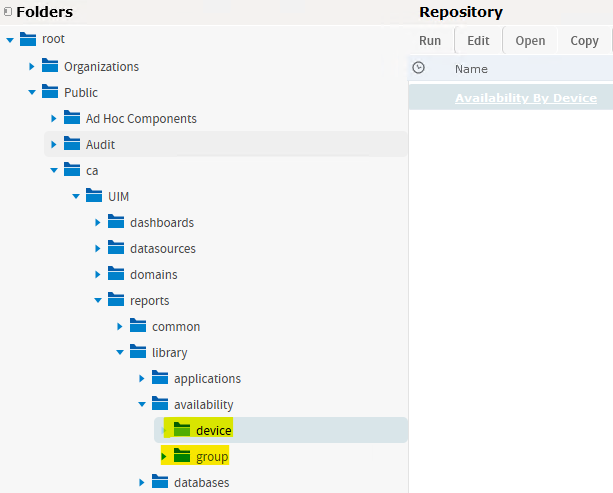 according to the documentation there should be 2 reports in CABI - Availability by Group and Availability by Device.
