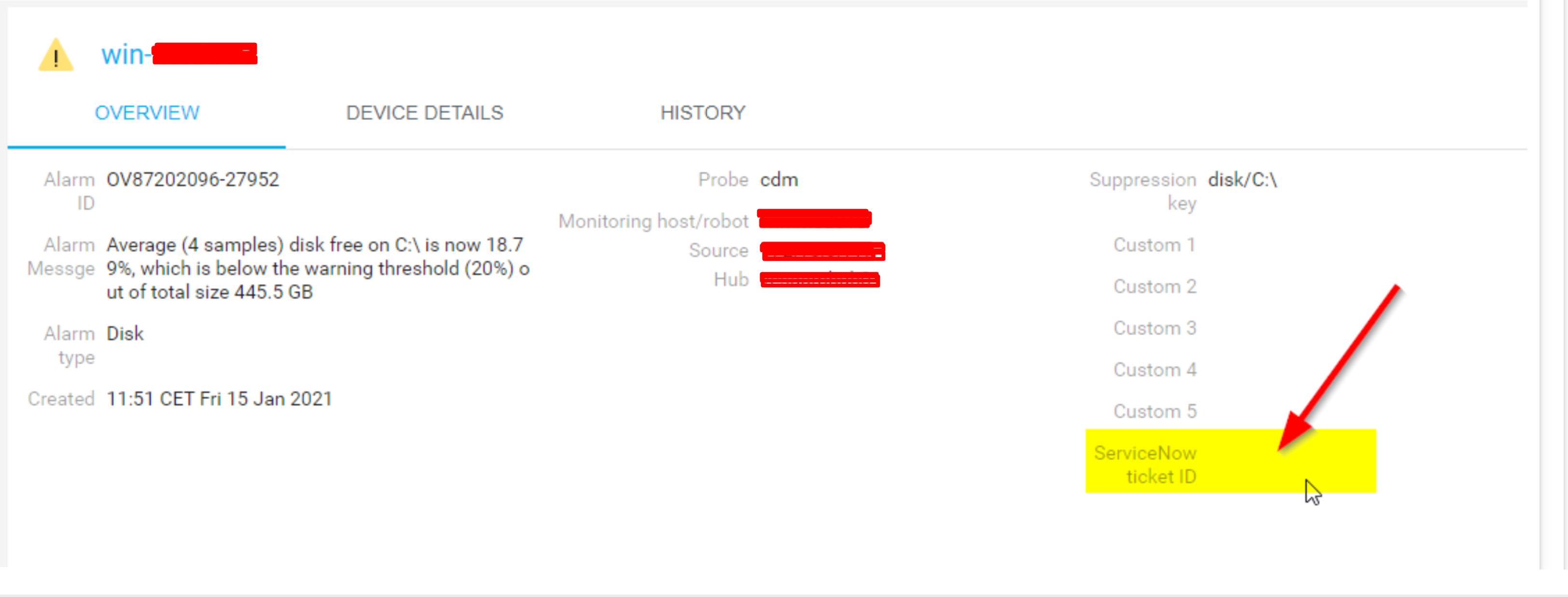 In the Operator Console Alarms View, you have in UIM20.3.2 an extra field "ServiceNow Ticket ID" and we want to use this new field.