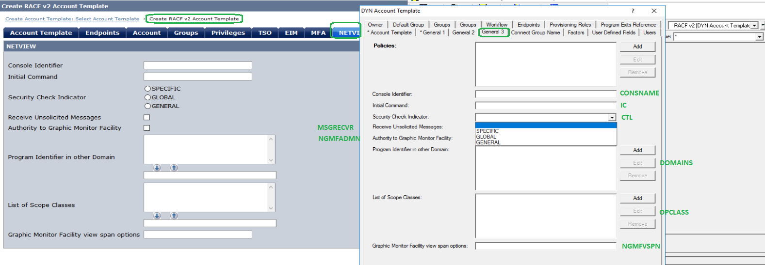This document links between Identity Manager / Provisioning server and RACF endpoint's NETVIEW attributes
