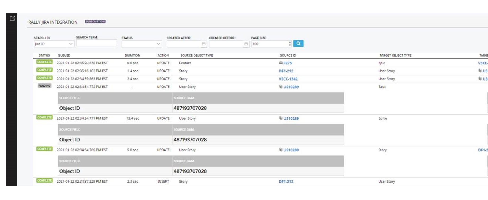 Only Task-related transactions were only set to a pending state whenever a new story is created in Jira and pushed to Rally using the adapter.