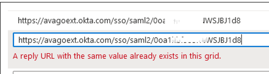 After change the updated field should look like following for this example SP ID. Your IDP screen might differ but the two ACS URLs should be displayed in the list. Please note that only hostname is the only difference in these two ACS URLs.